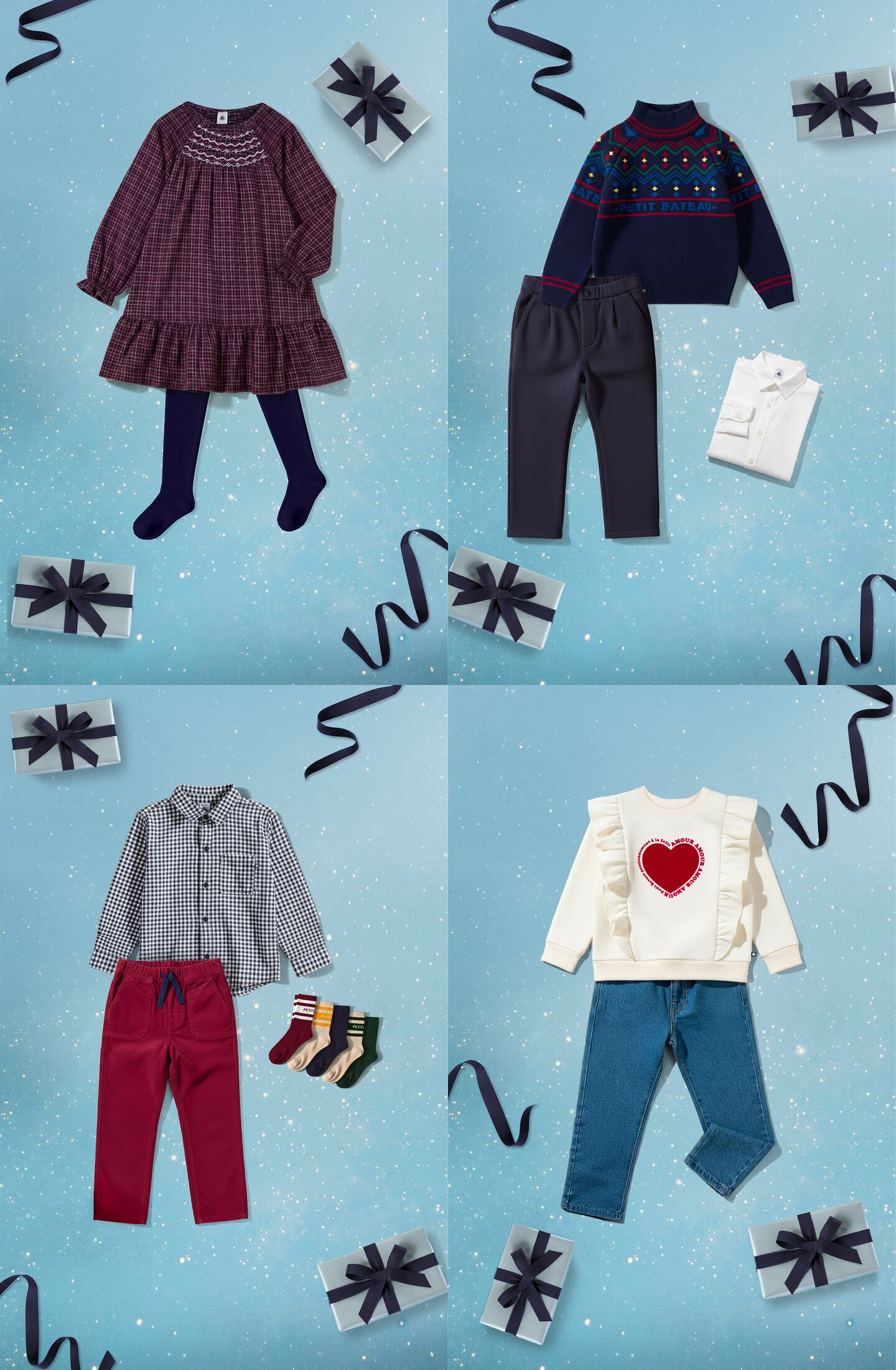 There's no need to send a list to Father Christmas when our personalised gift card can grant every wish. Available from the website or in stores, find it wherever the magic happens! With a gift card you can give any amount between €10 and €500 to spend at Petit Bateau in one or more instalments.